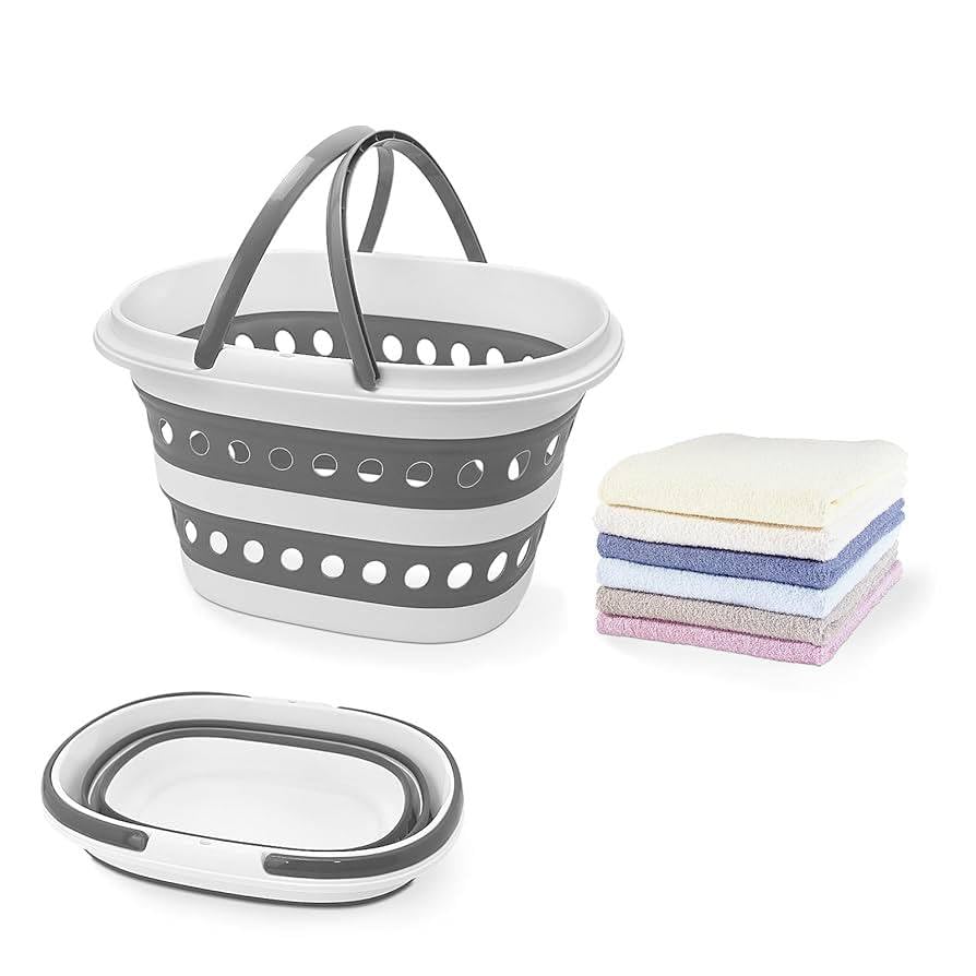 Generic - Collapsible Laundry Basket, Plastic Foldable Pop Up Laundry Hamper,Portable Washing Tub With Handle, Space Saving Storage Container/Organizer-