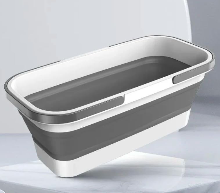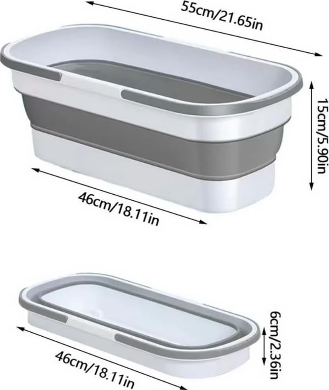 Generic - Collapsible Silicone Bucket, Grey and White, Rectangular 55x25 cm, Foldable with Handles for Easy Storage and Carrying