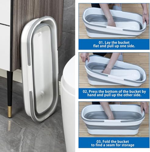 - FOLDABLE AND EASY TO STORE: The bucket has an innovative design that folds easily in seconds, making it perfect for small homes or limited spaces. After finished use, you can fold it up and store it in any closet or corner without taking up little space, making it highly functional and space-saving.