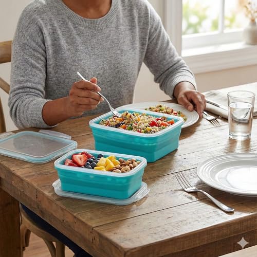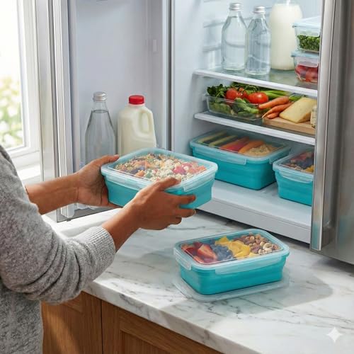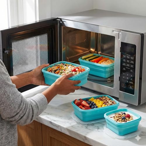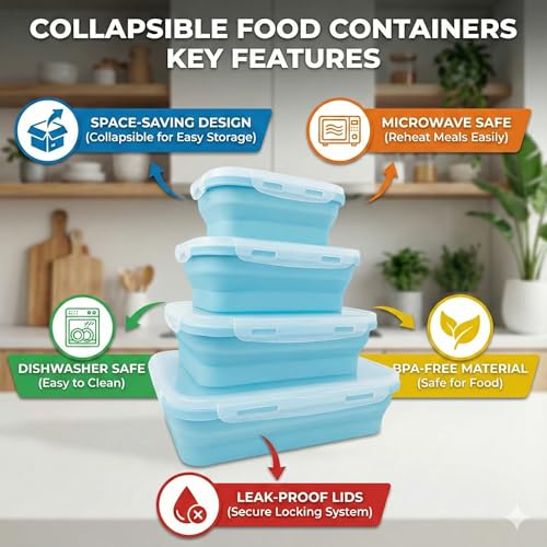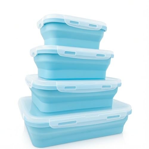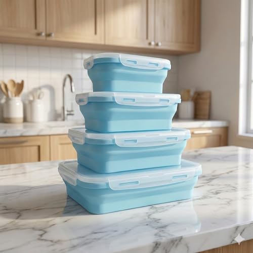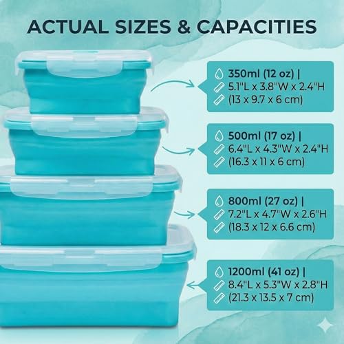 Generic - Collapsible Silicone Food Containers – Set of 4 Sizes with Airtight Lids & Steam Valve | Food Safe, BPA Free, Microwave, Freezer & Dishwasher Safe (Milk)