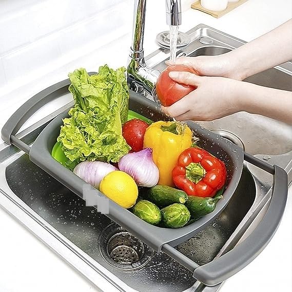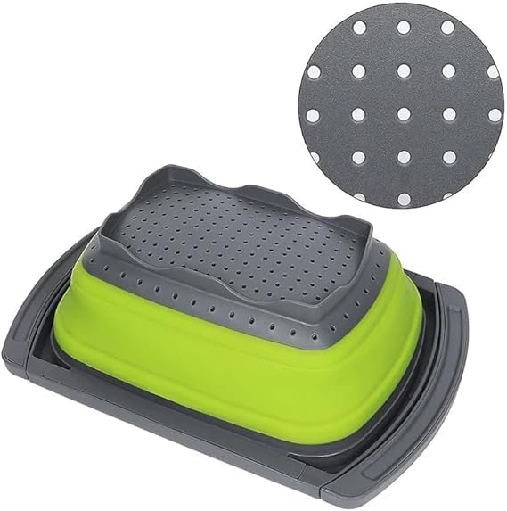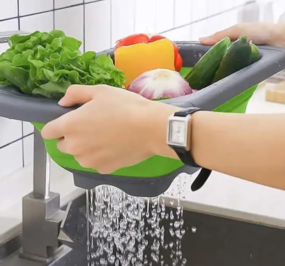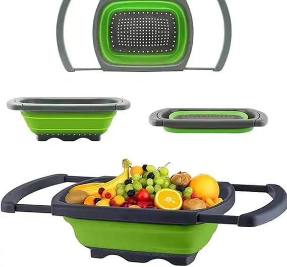 Generic - Collapsible Silicone Strainer with Extendable Handles – Practical and Durable Design for Straining Vegetables, Pasta, Meat & Fruits – Easy to Use & Eco-Friendly Kitchen Food Strainer (Green)