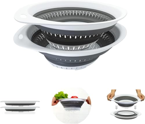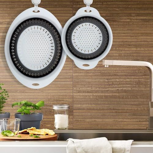 Generic - "مصفاة سيليكون قابلة للطي بأمان تام للطعام – مصفاة خضروات وفواكه آمنة من البيسفينول A دائري بيد_بيضوي، آمنة للاستخدام في غسالة الصحون مختلفين من FASHION.HOME" (3, (عشوائي), دائري بيد)