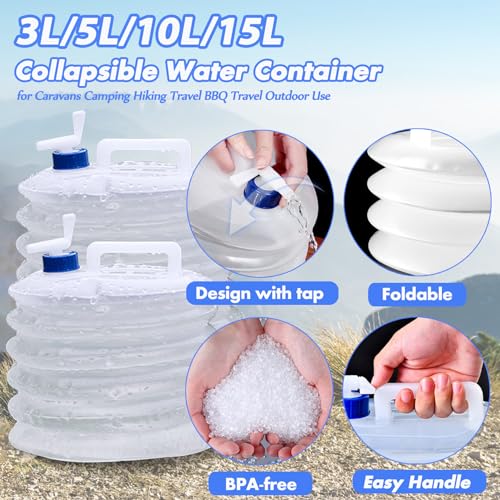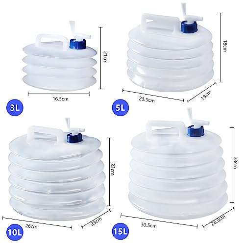 BIAOQINBO - حاوية مياه قابلة للطي سعة 5، 10، 15 لتر، دلو ماء قابل للطي، خزان مياه محمول وخالي من BPA للتخزين في الكارافان والتخييم والمشي لمسافات طويلة والسفر والشواء والسفر والاستخدام الخارجي، بلاستيك، شفاف