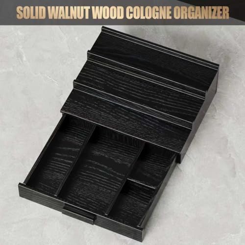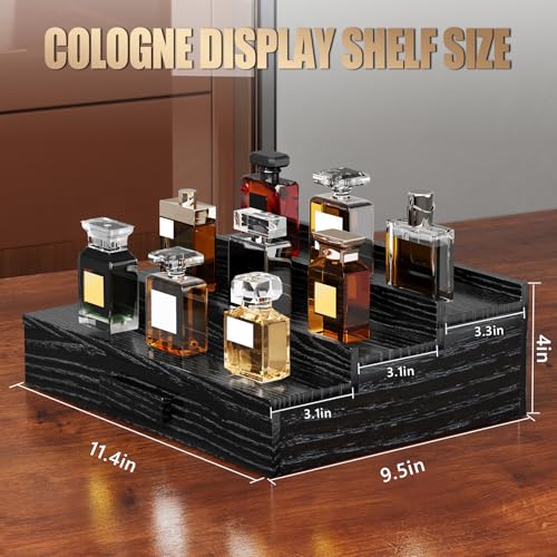 Gernshe - Cologne for Men, Solid Wood Perfumes Organizer for Men Dresser, Large Capacity Dustproof Cologne Holder with Drawer Storage Perfume Stand Organizer, (Black, 3 Tier)