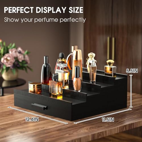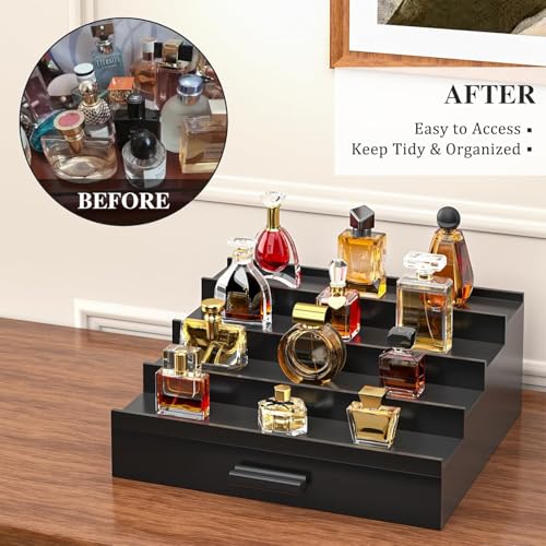 Sephyroth - منظم كولونيا للرجال - حامل عرض كولونيا فاخر من 4 طبقات مع درج تخزين، هدية مثالية لمحبي العطور (اسود)