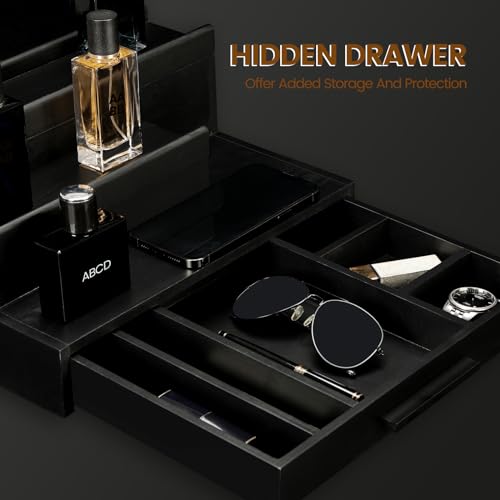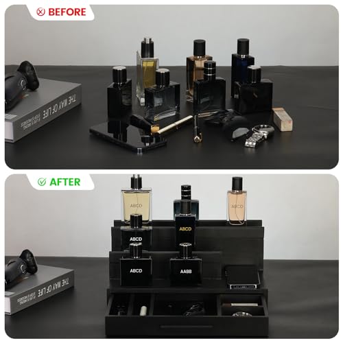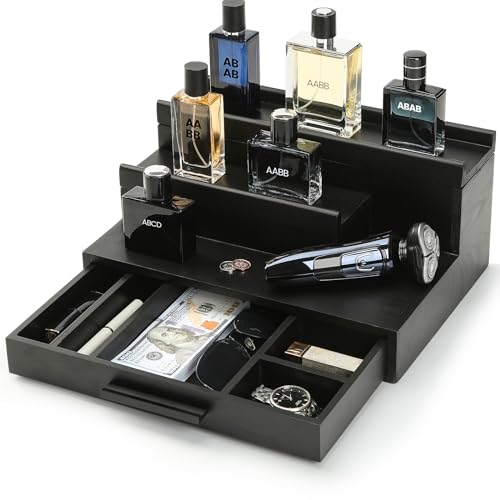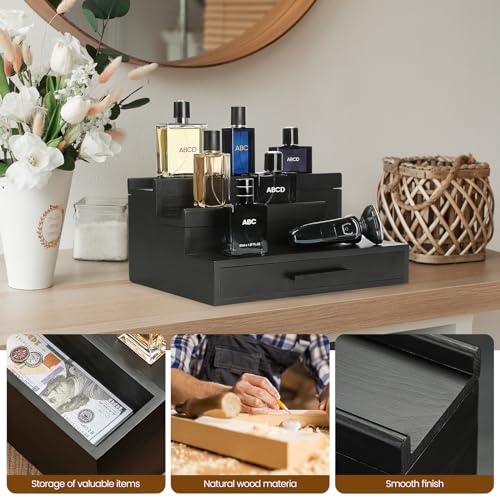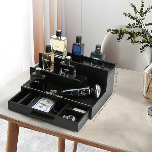 LY ' YJPDZSW - Cologne Organizer for Men - Wooden Perfume Stand with Drawer & Hidden Compartment, 3 Tier Cologne Tray for Organizing and Storing, Great Gift for Men, Black