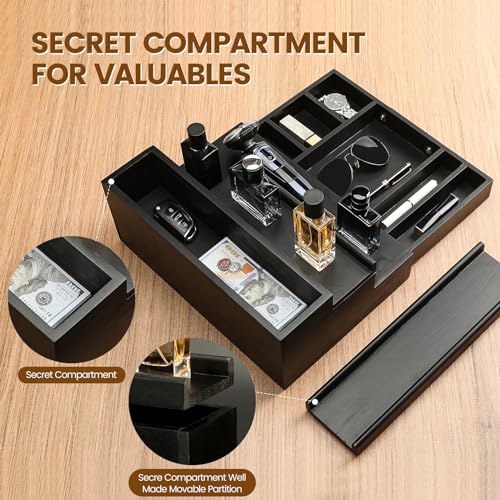 - DISCREETLY CONCEAL YOUR VALUABLES and PRIVATE POSSESIONS - Our luxurious wooden cologne organizer features a discreet hidden compartment, ideal for storing and protecting your valuable jewelry, personal items, and secret keepsakes with the utmost discretion. This wooden cologne storage stand is perfect for hiding and protecting your valuables.