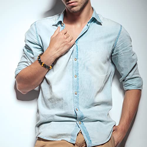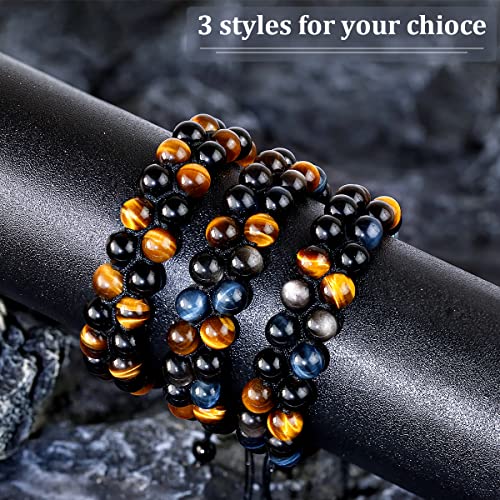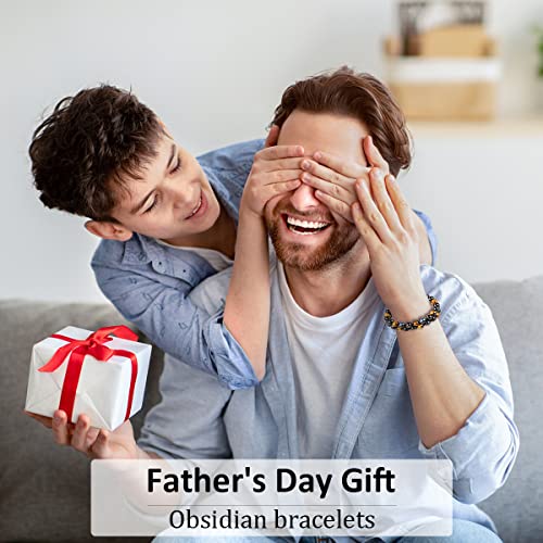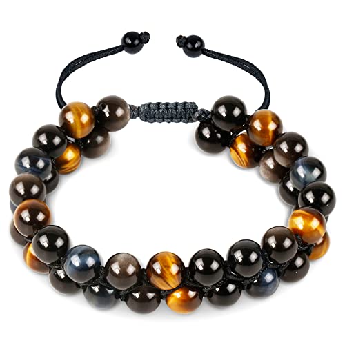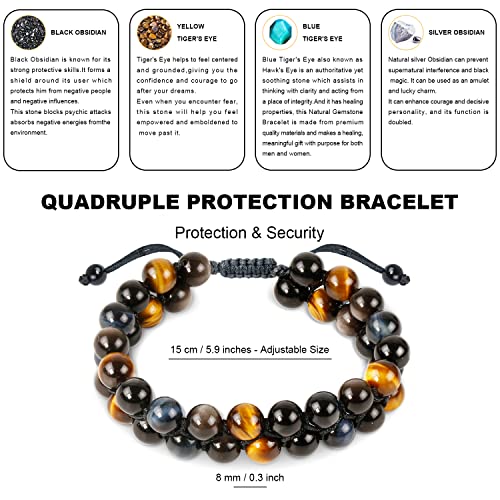 Generic - سوار خرز 8 ملم للحماية الرباعية يجلب الحظ والازدهار يتكون من حجر اوبسيديان الفضي - الاسود ـ عين النمر الاصفر - الازرق - اساور حجرية كريستال العقيق للرجال