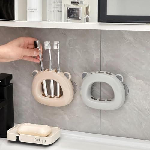 Generic - ملحق ملون - حامل فرشاة اسنان يثبت على الحائط مع قاعدة لاصقة قابلة لاعادة الاستخدام، بلاستيك صديق للبيئة سهل التنظيف، اجزاء قابلة للفصل للصيانة المريحة والاستخدام اليومي في الحمام