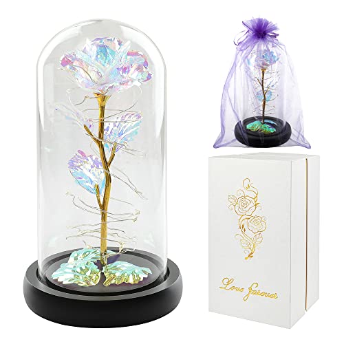Childom - هدية للام في عيد الام من وردة صناعية ملونة تدوم للابد، زهور مضيئة قبة زجاجية، فكرة لعيد ميلاد والذكرى السنوية، تشايلدوم، متعدد الألوان