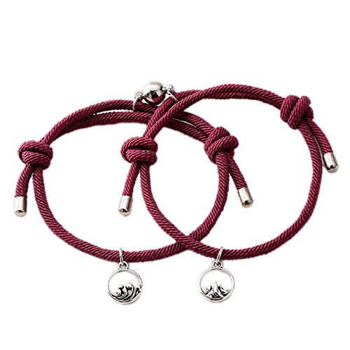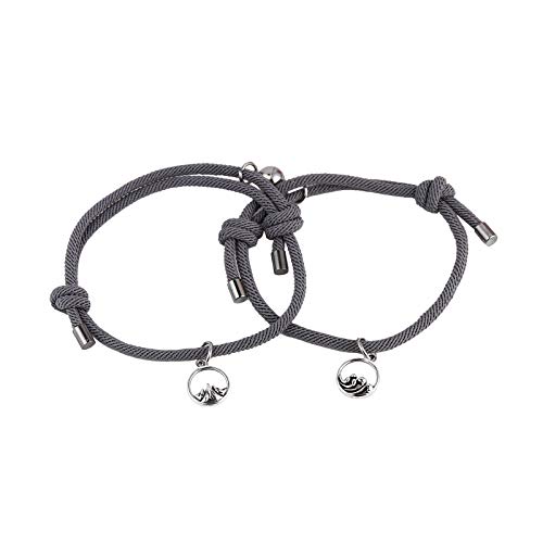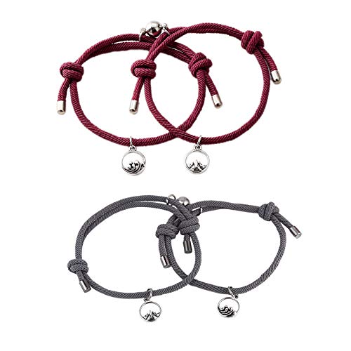 COLORFUL BLING - مجموعة اساور مغناطيسية للزوجين بدلاية بتصميم جبل ومحيط من كولرفول بلينج حبل مضفر يدوي الصنع سوار جذب متبادل للحبيبة والصديقة 4 قطع معدن خليط معدني للنساء للرجال بنات الأولاد للبالغين الجنسين