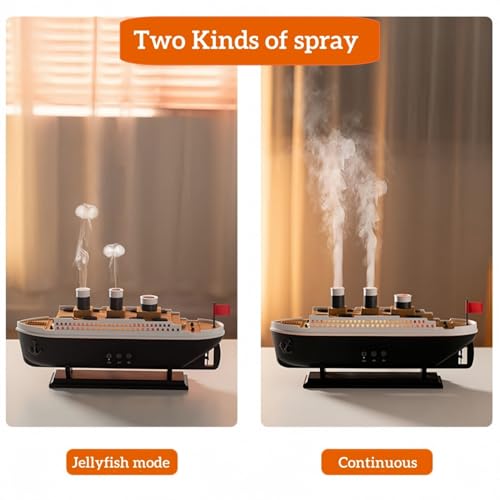 - 【Classic Ship Shape Aroma Diffuser】:Unique ship shape diffuser not only a diffuser but also a Artistic ornaments. The diffuser of the innovative jellyfish/dense spray adopts high-frequency ultrasonic atomization