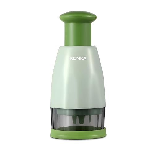 - التشغيل بالضغط اليدوي يلغي الحاجة إلى السكاكين؛ يتيح لك المكبس غير القابل للانزلاق تقطيع البصل أو الثوم أو المكسرات أو الأعشاب بضغطة بسيطة.