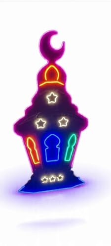 Generic - فانوس نيون بإضاءة LED ملونة، تصميم فانوس رمضاني بقمر، 40x50 سم، بقابس كهربائي