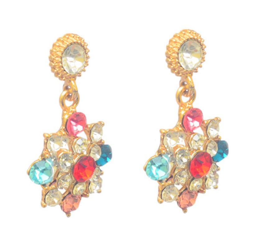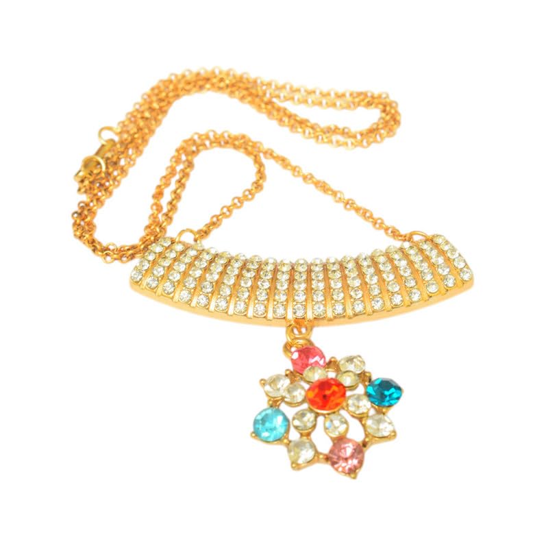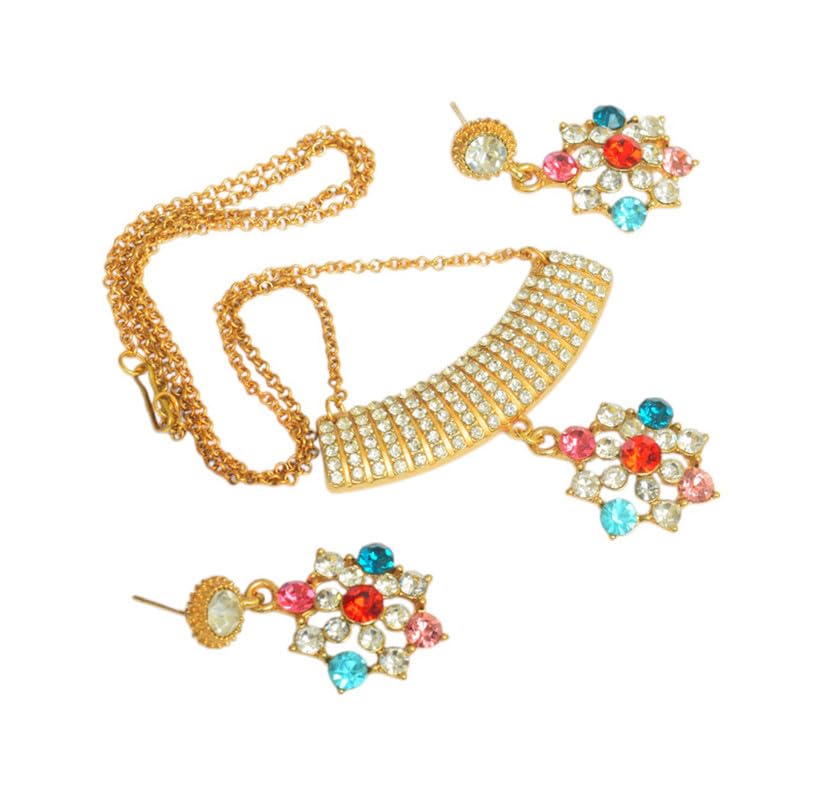 Generic - طقم عقد ملون مع حلقان للنساء، 3 قطع - متعدد الألوان