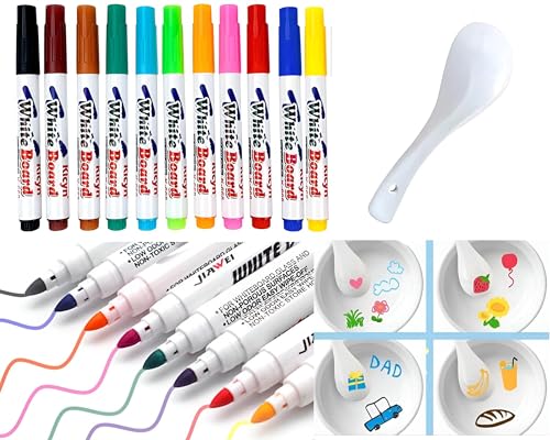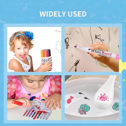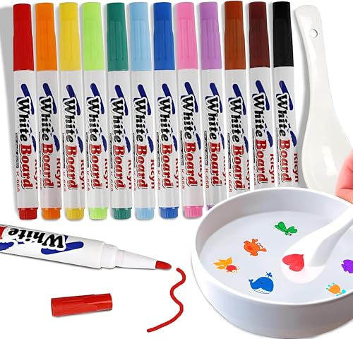 - This 12-color whiteboard marker set combines durability, vivid color, and safety: it includes markers for whiteboards and a magic watercolor pen that delivers bright, eye-catching tones on white surfaces, while the water-based, eco-friendly ink remains non-toxic and low-odor, designed for reusable whiteboards, simple doodle art, and everyday classroom or home creativity.