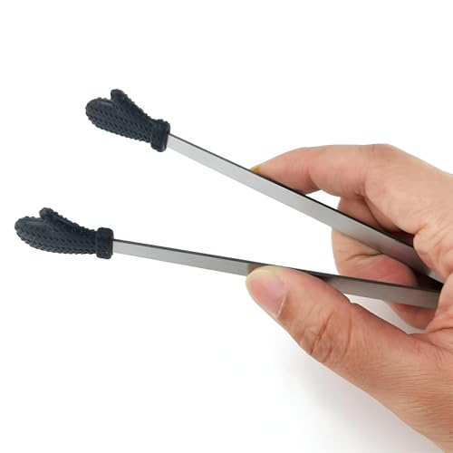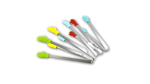 - This set includes four mini silicone hand-shaped tongs designed for food serving, each about 5.1 inches long, combining stainless steel and silicone to offer a sturdy tool that handles a variety of items without damaging them.