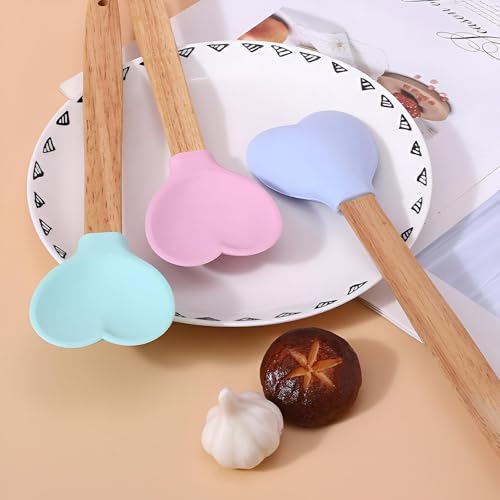 Generic - Colorful Silicone Spoon - Beautiful heart-shaped design with a natural wooden handle makes cooking enjoyable while being easy to clean and ideal for various culinary tasks.