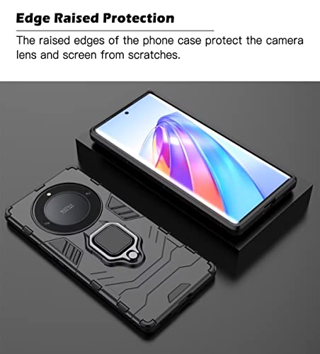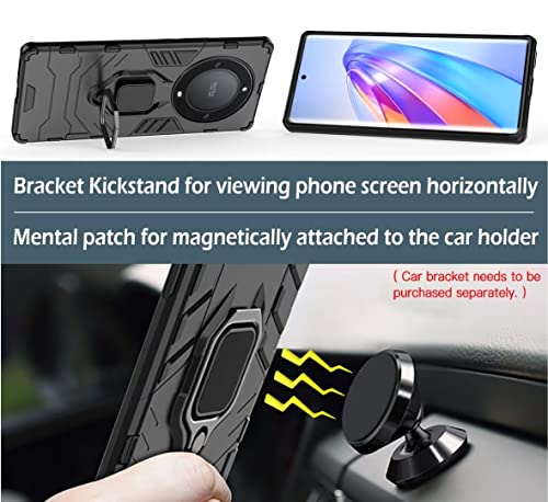 COMAKU - Armor Cover for Honor Magic5 Lite 5G/Magic 5 Lite, Shockproof TPU+PC Case with Ring Holder [with 2 Pieces Tempered Glass Screen Film] - Black