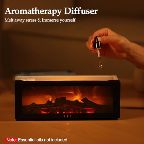 • Multi-Functional Essential Oil Diffuser: Not just a decorative fireplace, it’s also a high-performance essential oil diffuser. With a 150ml large water tank and a mist output of 20-25ml/h, it continuously releases soothing fragrances, perfect for spa treatments, skincare, yoga, and more, enhancing your home experience