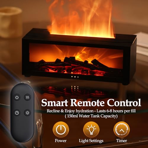 comeder - Flame Diffuser, 150ml Ultrasonic Cool Mist Humidifier, 3D Fireplace Essential Oil Aromatherapy Diffuser, 7 Colour with Remote Control, Auto Shut-Off & Timer, for Home, Bedroom, Spa