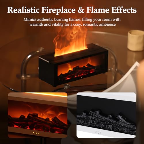 • Realistic 3D Flame Design: This flame diffuser features advanced 3D flame technology, creating a warm, lifelike fireplace ambiance. Whether you're relaxing, reading, or meditating, it immerses you in a cosy and comforting atmosphere