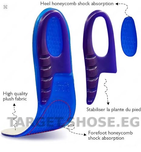 - دعم مثالي للكعب وتقوس القدم لتقليل الألم طوال اليوم صُمم النعل الطبي الجل خصيصًا لتوفير دعم قوي لمنطقة الكعب وتقوس القدم، مما يساعد على تخفيف آلام المشي والوقوف لفترات طويلة، سواء أثناء العمل أو ممارسة الرياضة أو الاستخدام اليومي، وهو مثالي للأشخاص الذين يعانون من الشوكة العظمية أو التهاب اللفافة الأخمصية.