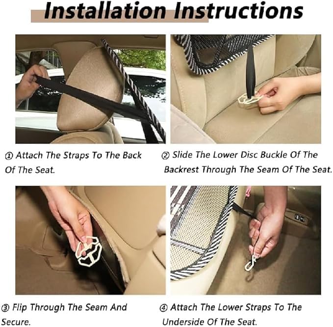 - EASY TO INSTALL AND PORTABLE: The seat cover can be easily installed in just a few minutes. Features elastic straps that are adjustable to fit any car seat. Thicker and stronger mesh nylon straps, easy to attach to car seats and office chairs, suitable for all car models. Plus, our backrest is lightweight and easy to carry.