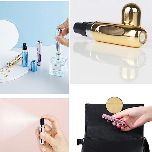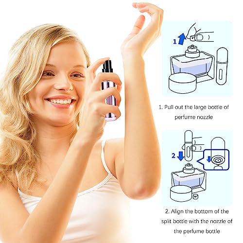 - زجاجات عطر صغيرة: زجاجة بخاخ العطر ذات حجم مثالي للسفر. سهل الاستخدام وسهل الملء/إعادة التعبئة، فقط اضغط الجزء السفلي على زجاجة عطرك المفضل واستمر في الضغط حتى يتم إعادة الملء.