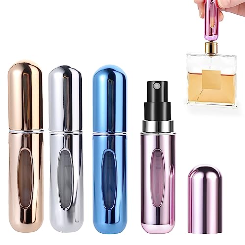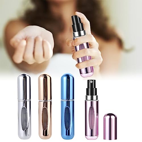 Comioke - بخاخ عطر من كوميوك، عبوة من 4 زجاجات عطر فارغة قابلة لاعادة الملء بسعة 5 مل، زجاجات عطر محمولة، زجاجات عطر قابلة لاعادة الملء، زجاجة بخاخ صغيرة محمولة لشنطة اليد والسفر والعطلات