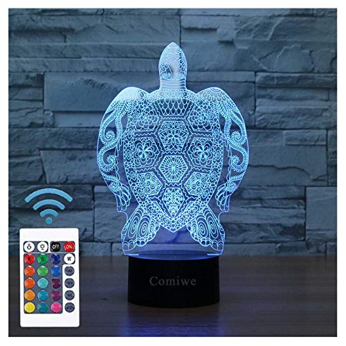Comiwe - Turtle (D) 3D Illusion Night Light Lamp Toy, Decoration LED Bedside Lamp, 16 Colours Changing with Remote Control, Christmas Birthday Gift for Girls, Boys, Children, Friends