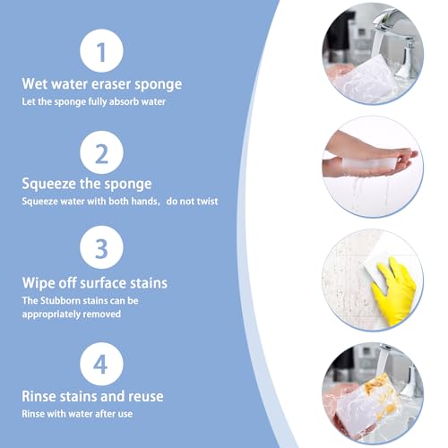 - 【لا يسهل تمزيقه】 منظف الحوائط لدينا عالي الكثافة، عالي الصلابة، منظف القاعدة ليس من السهل تمزيقه، إسفنجات التنظيف يمكنها توفير قوة تنظيف طويلة الأمد. يمكن إعادة استخدام الشرشوبة السحرية، لوازم تنظيف المنزل لا تحتاج إلى فرك قوي بعد كل استخدام، الاحتكاك في اتجاه واحد يمكن أن يطيل بشكل فعال عمر خدمة أوراق المساحة