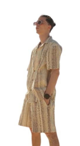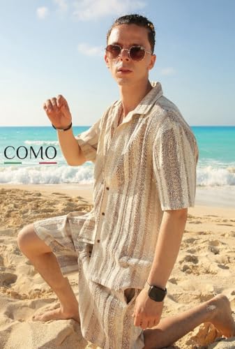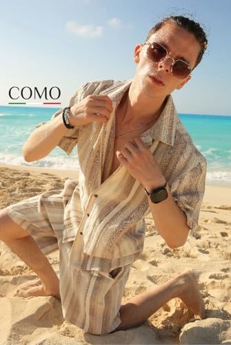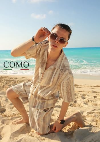 Generic - قميص رافيلو للرجال من كومو، انيق ايطالي، عصري، مقاس L، مناسب للصيف، ناعم الملمس وشورت انيق بنفس الالوان