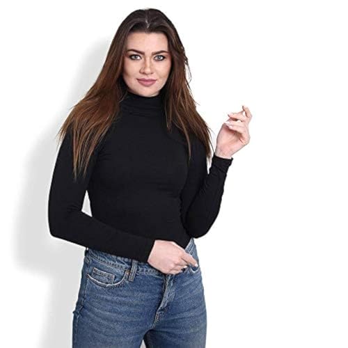 COMODO - Comodo Full Sleeve High Neck Black Cotton Blend Women's Casual Solid Adult