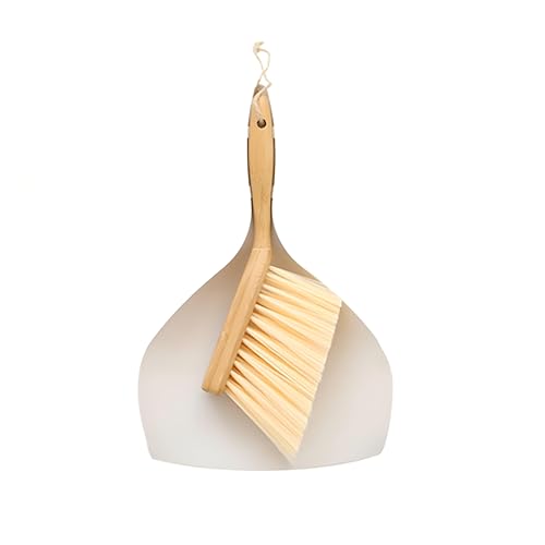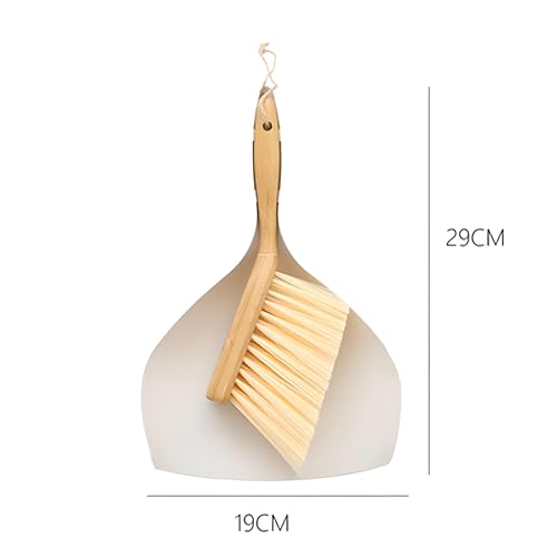 Generic - Compact Cleaning Set - Bamboo-handled mini dustpan and brush for quick tidy-ups on desks, keyboards, and sofas, white and natural wood, 19x29cm perfect for small areas