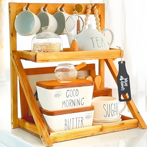 - Versatile wooden organizer suitable for coffee stations, kitchen countertops, spice displays, and dry‑goods storage.