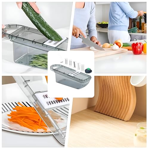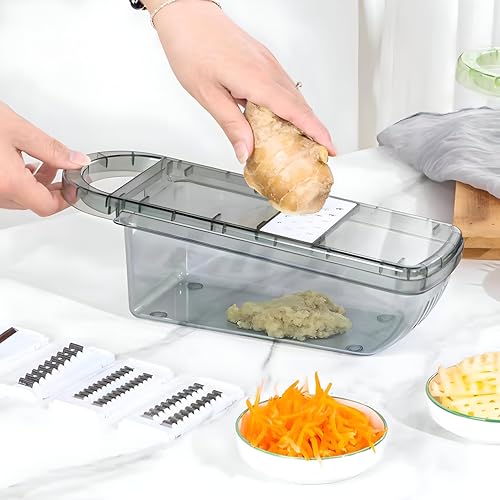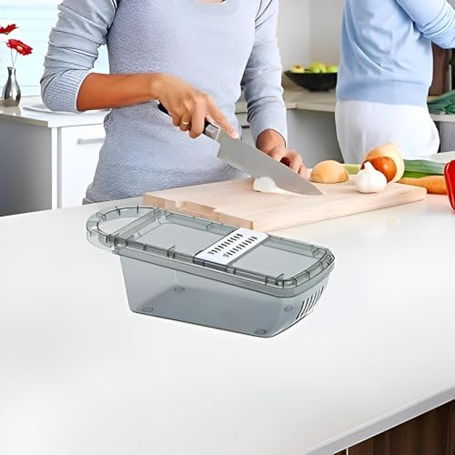 - Versatile handheld design combines a manual vegetable grater and a multi‑blade cutter in one compact tool, allowing you to slice, dice, shred or chop a wide range of foods with a simple grip, making preparation faster and more convenient for any recipe.