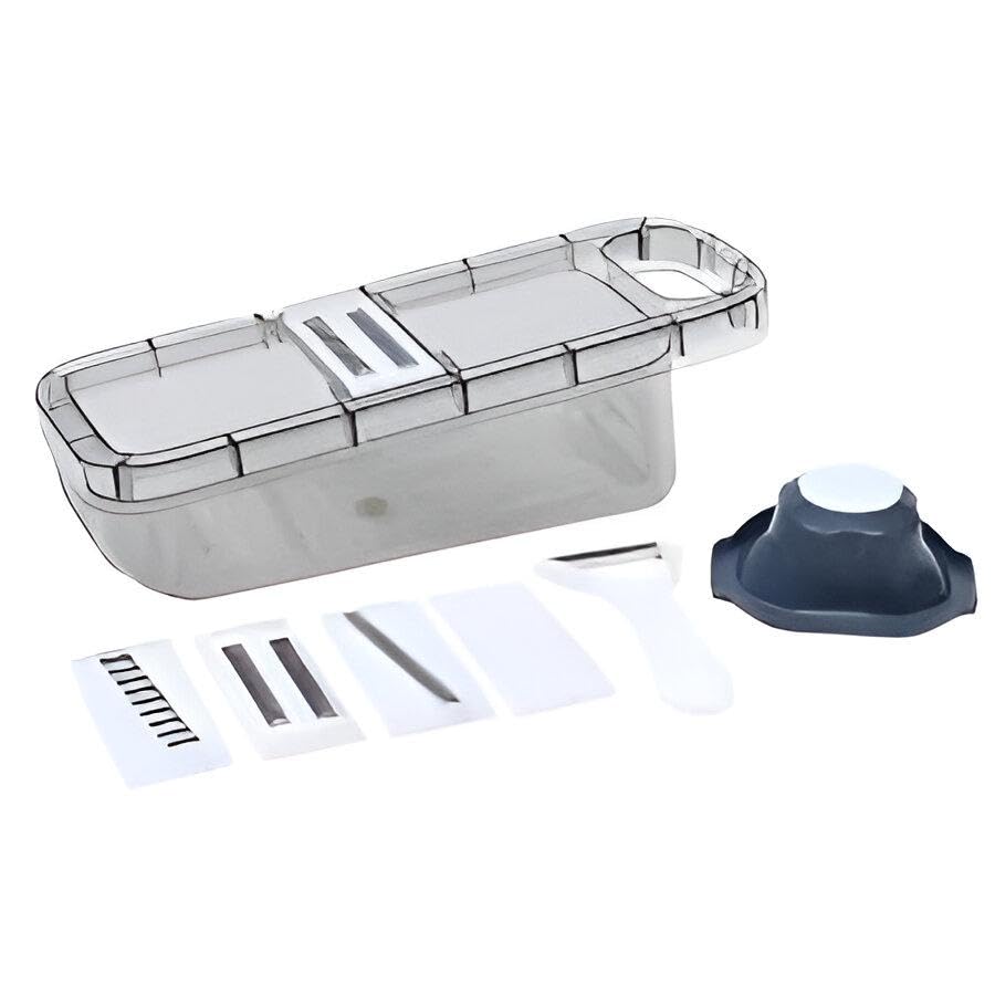 Generic - Compact Grating Kit - Kitchen accessory with carrot & potato graters, fine and coarse shredding plates, slicing blade, black‑transparent finish, ideal for fast fruit, veg and cheese prep.