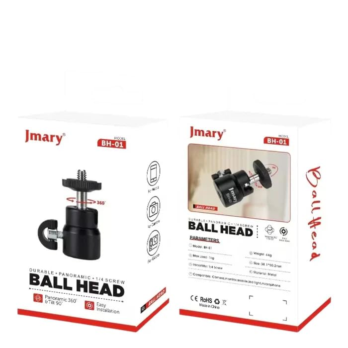 Generic - Compact Mini Ball Head BH-01, Metal Construction, 360° Pan & 90° Tilt, 1/4″ Screw, 1kg Load Capacity, Lightweight for Photography, Vlogging, and Streaming