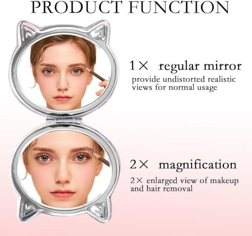 Generic - Compact Mirror DIY Diamond Painting Small Pocket 1X/2X Makeup Mirror Portable for Purses and Travel for Kids Women Girls (glitter water Cat design)