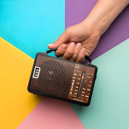 - Designed for portability, this radio includes a convenient built-in handle that makes it easy to carry around. Whether you're heading to a picnic, spending a day at the beach, or simply moving around your home, this feature ensures that your listening experience can accompany you anywhere, adding to the appeal of mobility and convenience.
