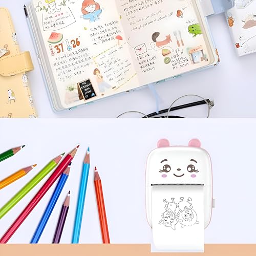 Generic - طابعة حرارية صغيرة الحجم لاسلكية محمولة مع بلوتوث للاستخدام المحمول تتميز بتكامل التطبيقات الذكية وطباعة ملونة