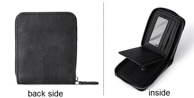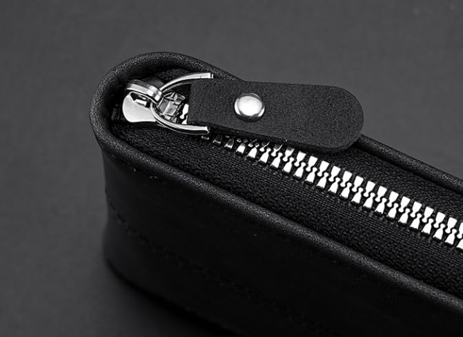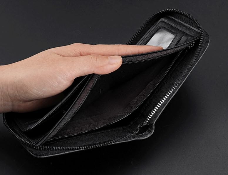 Generic - Compact Zip Around Wallet, Black Leather, ID Window Card Holder with Decorative Stripe for Men