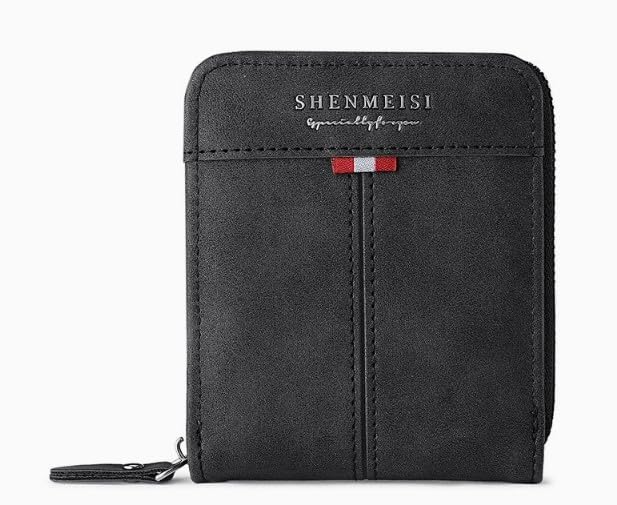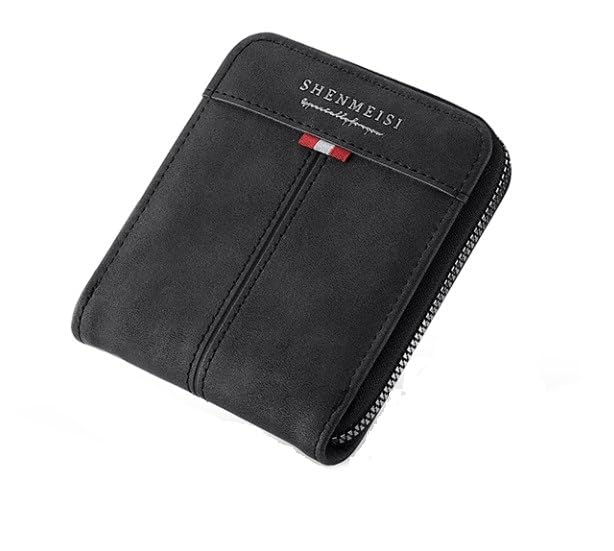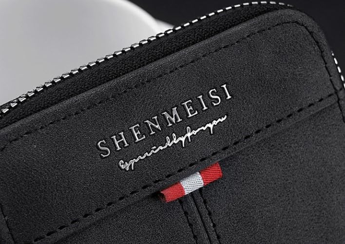 - PREMIUM DESIGN: SHENMEISI compact wallet features a sleek black leather construction with distinctive decorative stripe detail for a sophisticated look