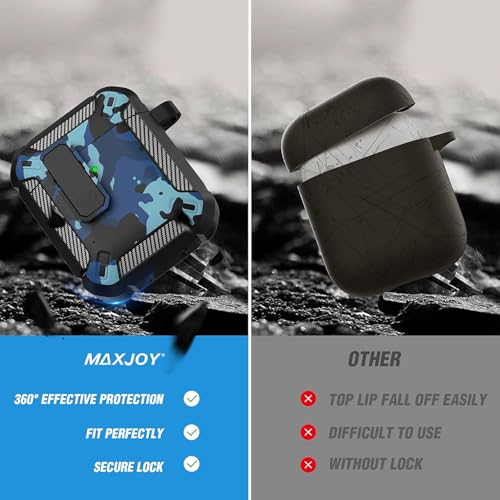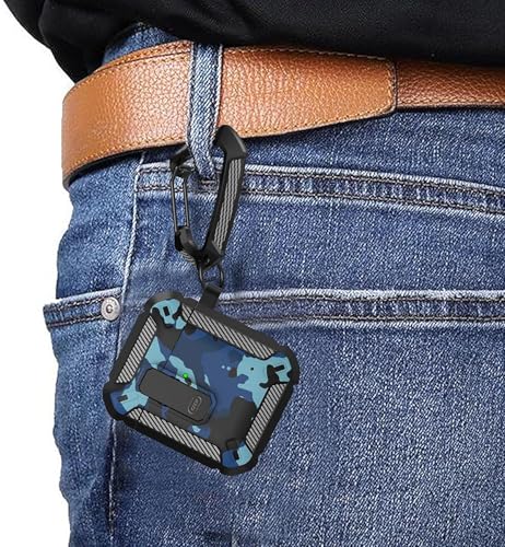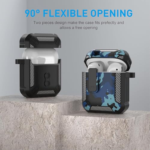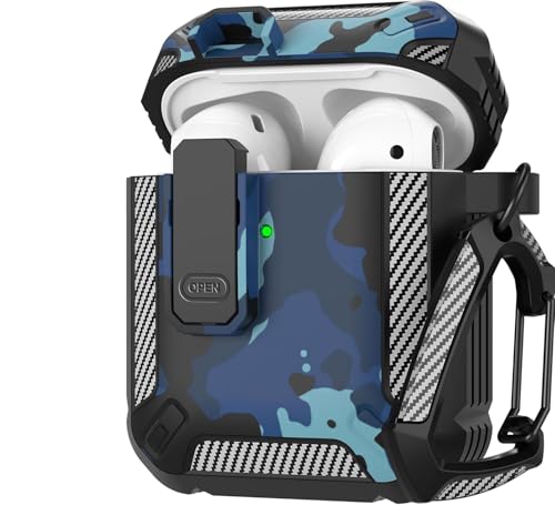ELMO3EZZ - Compatibility With AirPods 2nd Generation Case Cover, AirPods 1/2 Case with Lock Gen 2 Hard Shell Rugged Shockproof Protective Cover with Keychain (Camo Blue)