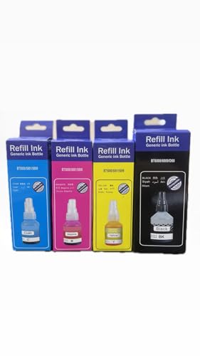- مجموعة كاملة: تتضمن 4 زجاجات من الحبر بألوان أسود، سماوي، أرجواني، وأصفر لتلبية جميع احتياجات الطباعة