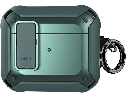 Generic - جراب حماية ممتص للصدمات ومرن بقفل آمن مصمم للرجال والنساء، جراب من البولي يوريثين الحراري مناسب للشحن اللاسلكي ومزود بسلسلة مفاتيح متوافق مع سماعات ايربودز 3 2021، أخضر