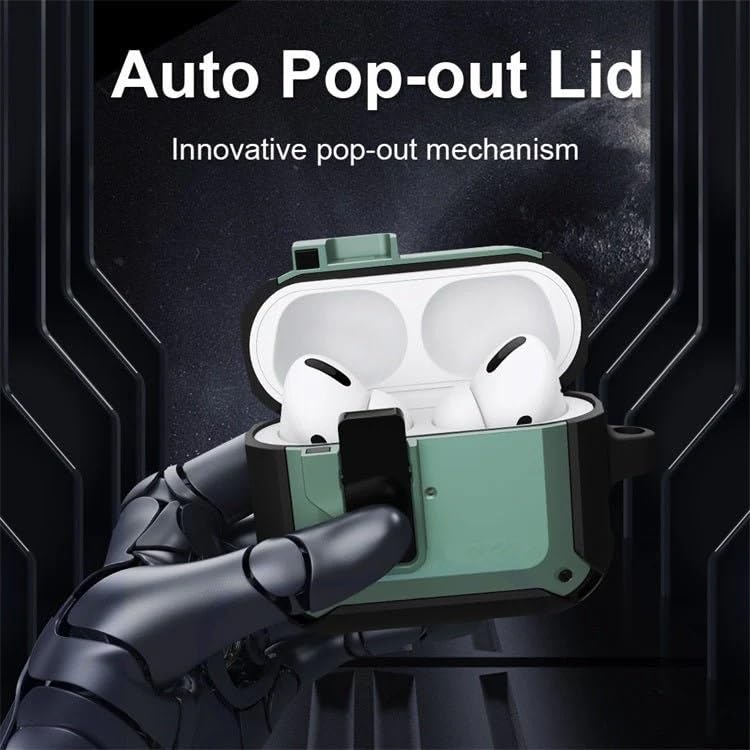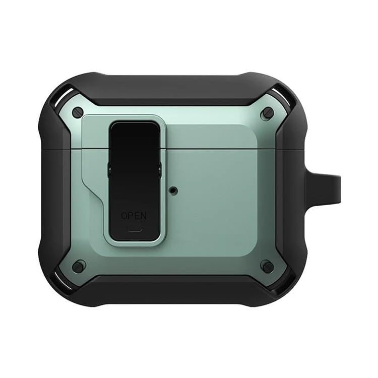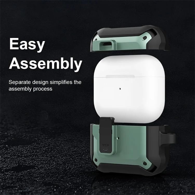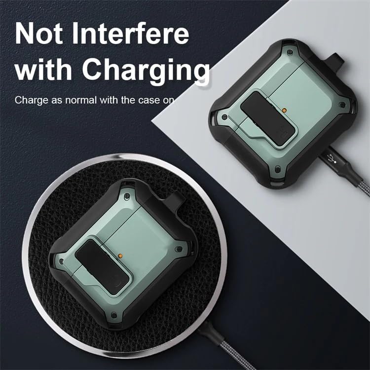 ELMO3EZZ - Compatible with AirPods 4 Case (2024) Cover with Lock, Clip Airpods 4th Generation Case 2024 Men Women, Shockproof Protective Hard Shell with Carabiner (Black@green)
