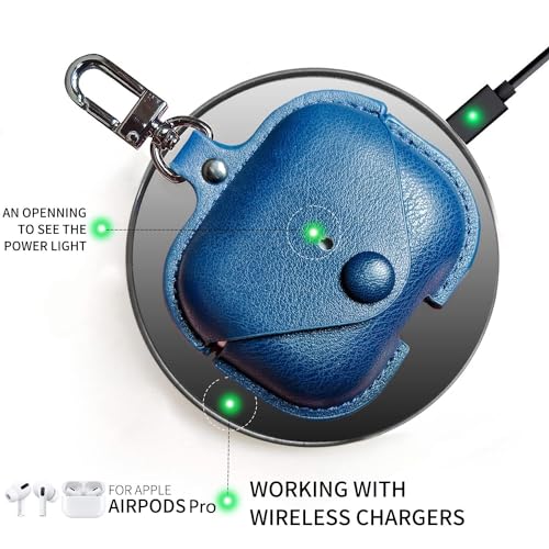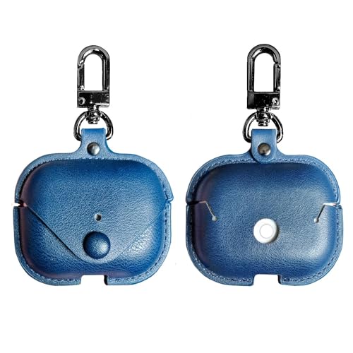 CSOCEPO - Compatible with Airpods Pro 2 Protective Case 2022 for Women Men and Leather and Compatible with Airpods Pro 2nd Generation Case 2022 LED on the Front Visible with Carabiner Blue