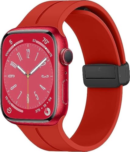 Generic - متوافق مع سوار ساعة ابل 42 ملم 44 45 49 رياضي رفيع ومتين من السيليكون الناعم اغلاق مغناطيسي سيليكون مرن قابل للتعديل للنساء والرجال احمر